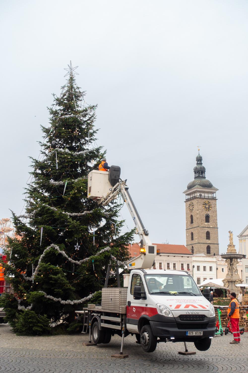 Vánoční strom na českobudějovickém náměstí je už nazdoben. Slavnostní rozsvícení se uskuteční 26. listopadu od 16.30 hodin. V tu dobu bude náměstí uzavřeno pro auta, řidiči zde neprojedou od 16 do 17.30 hodin. Dočasně budou také zrušeny zastávky MHD Piaristická a Náměstí Přemysla Otakara II., doprava povede po objízdné trase. Náměstí bez aut bude také o všech adventních nedělích.
